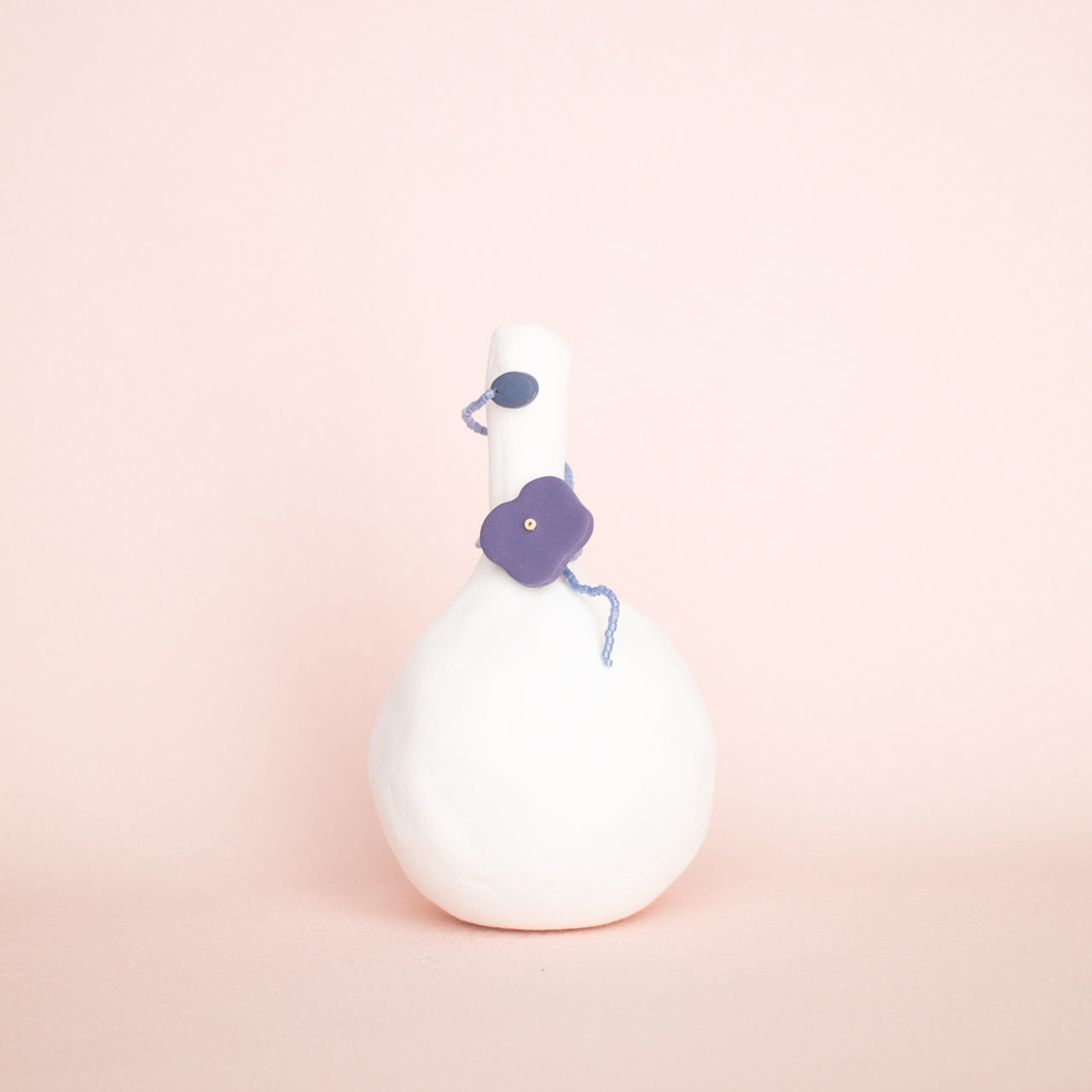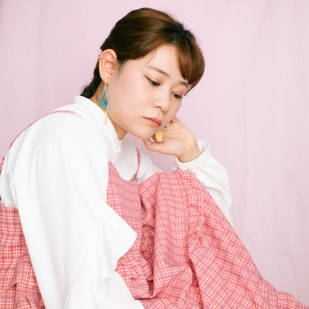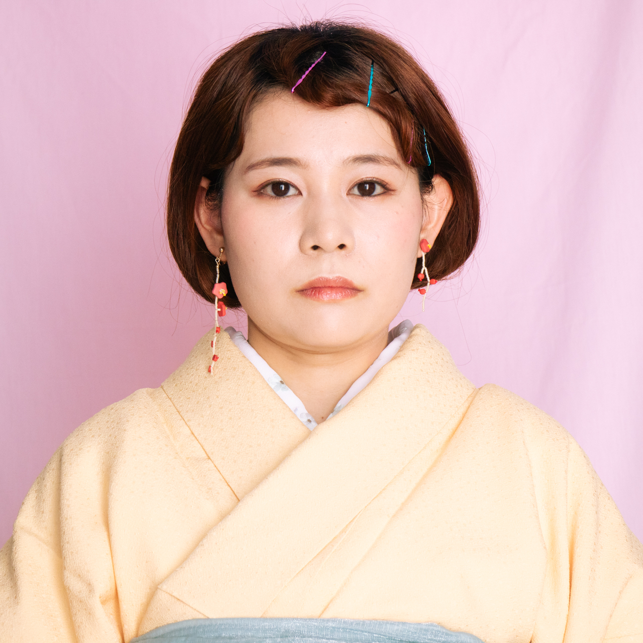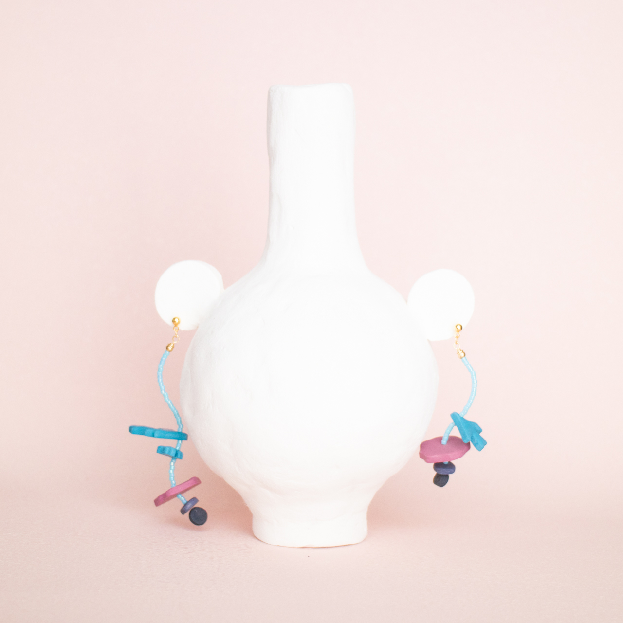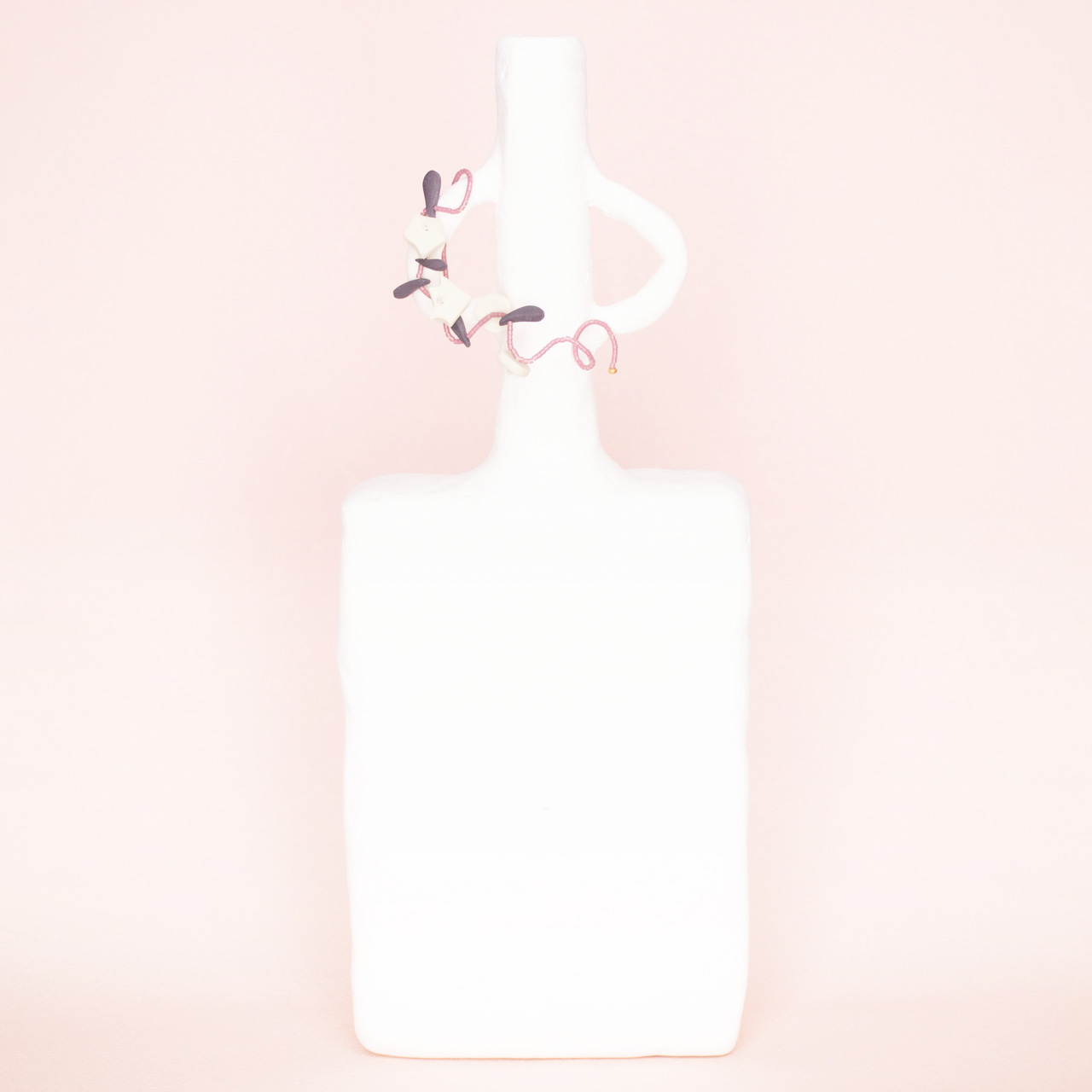 花を髪飾りに見立ててみたり、シロツメクサで花冠を作った頃をふわっと思い出すような、童心にかえることのできる大人のためのアクセサリーを目指しました。botanicではHi, thereの新しい試みとして、ワイヤーやビーズといった異素材を従来のクレイと組み合わせてみました。これまで9ピンやマルカンといった既製品を使用していた部分をワイヤーやビーズに変更したことで、より自由で遊び心たっぷりな作品に仕上がりました。
