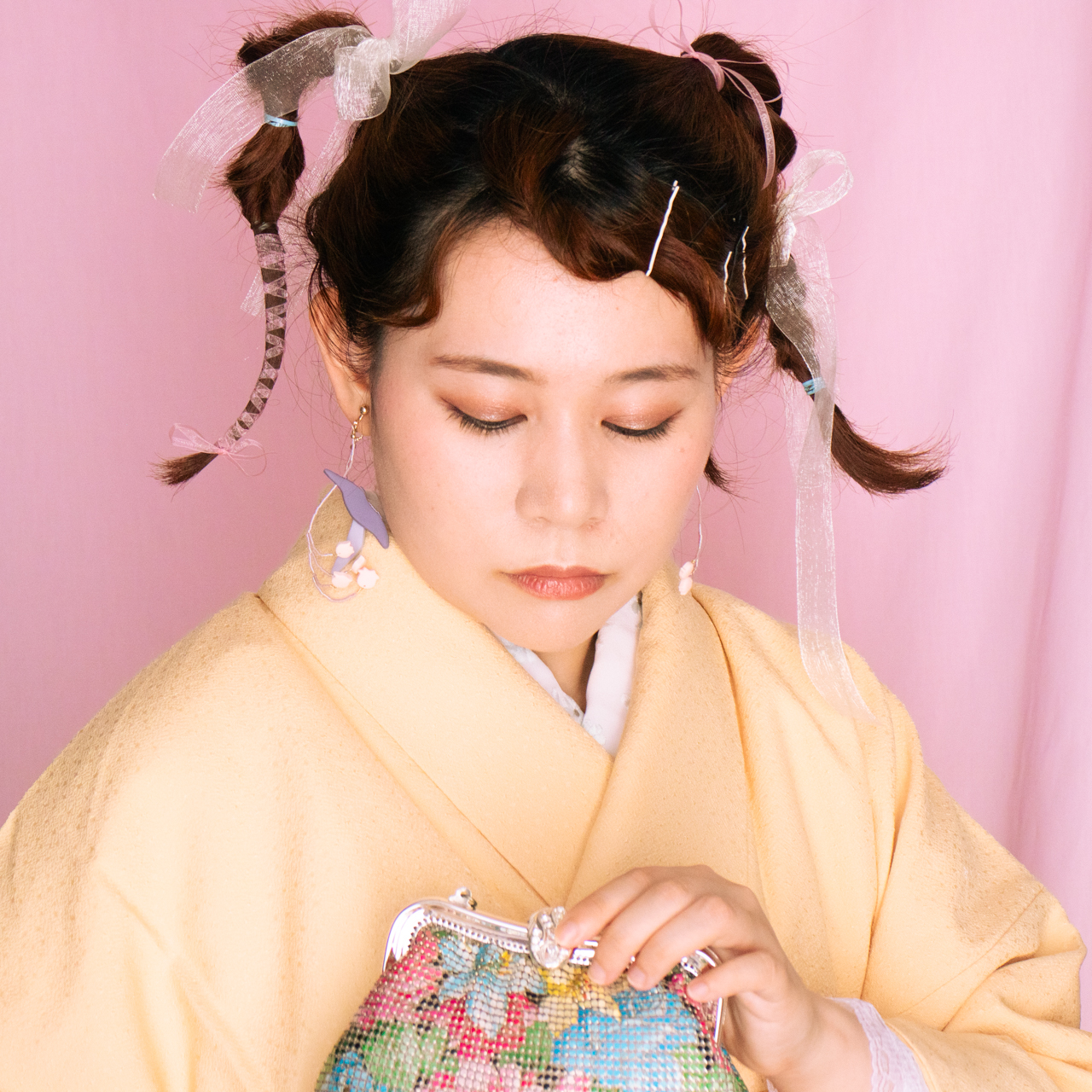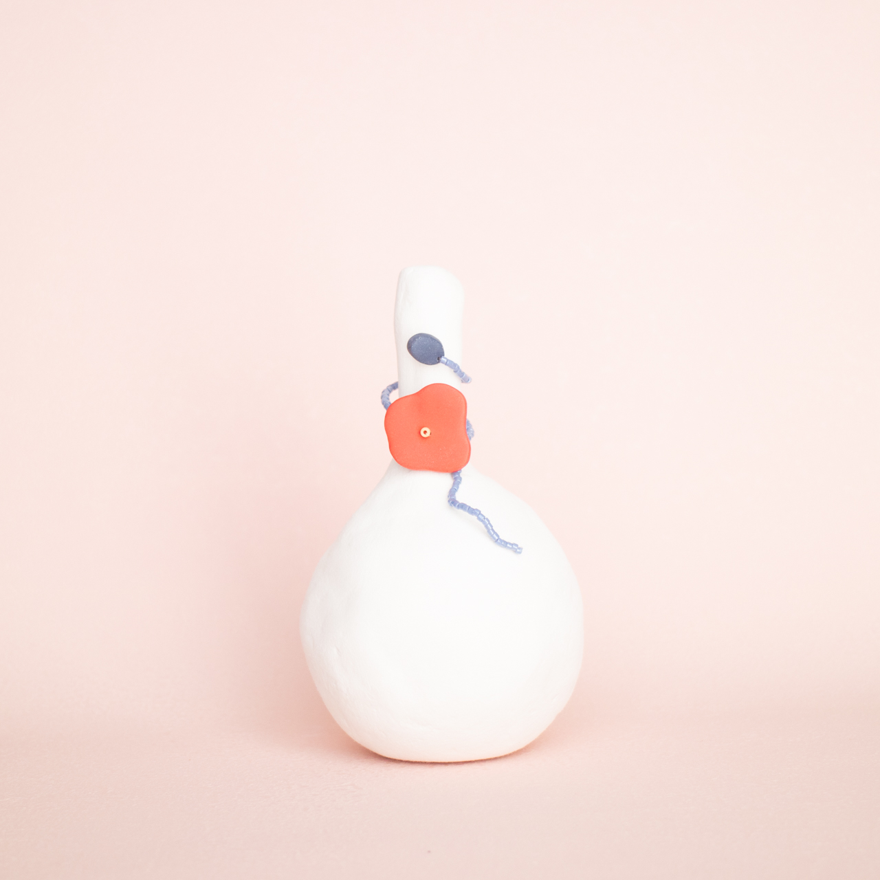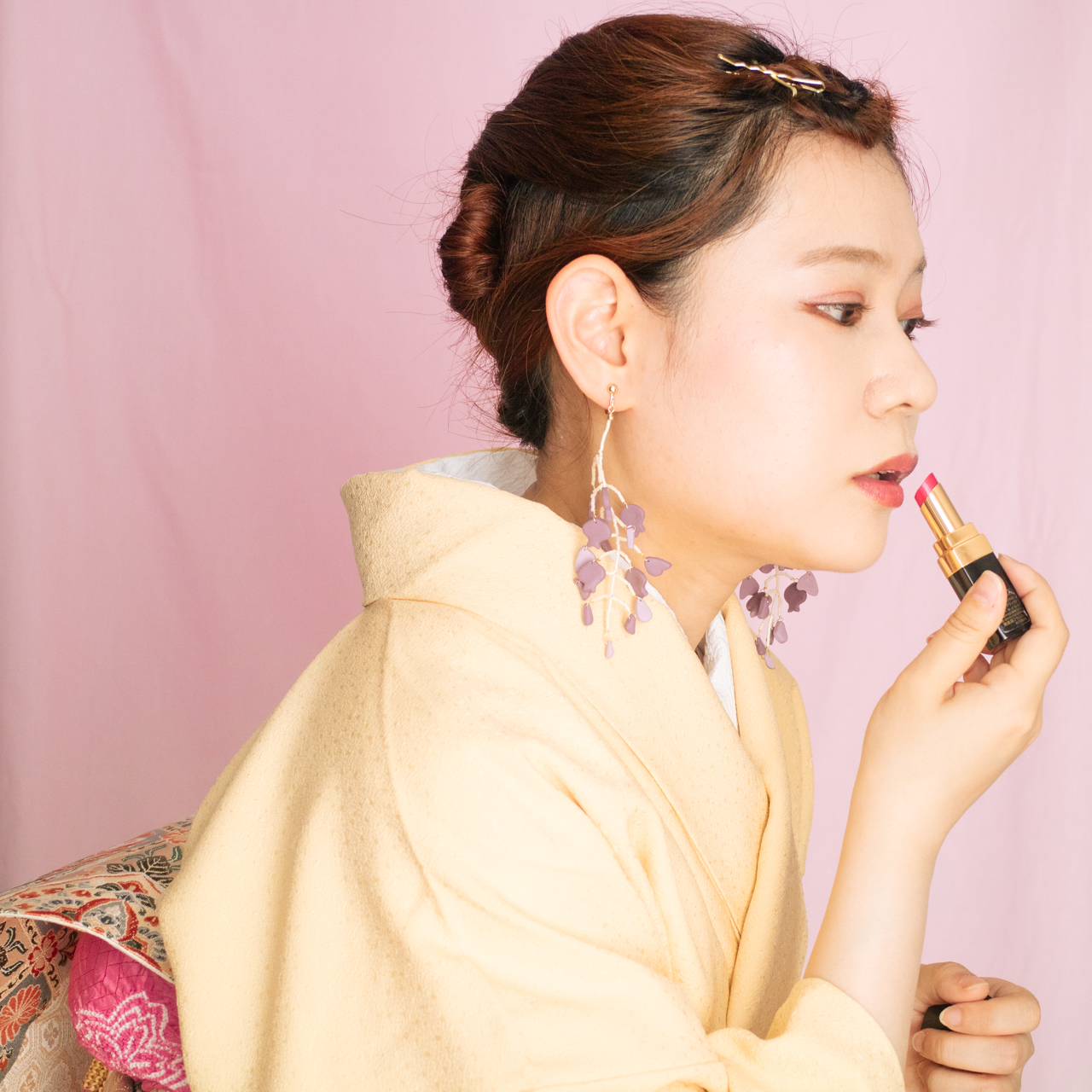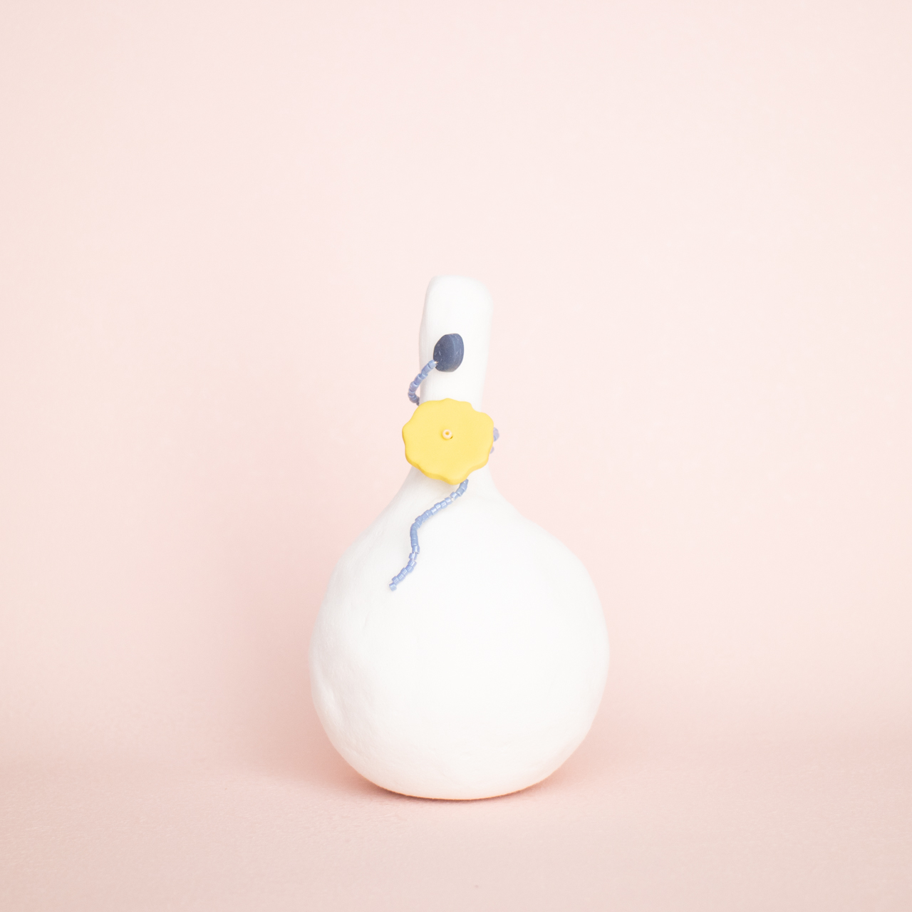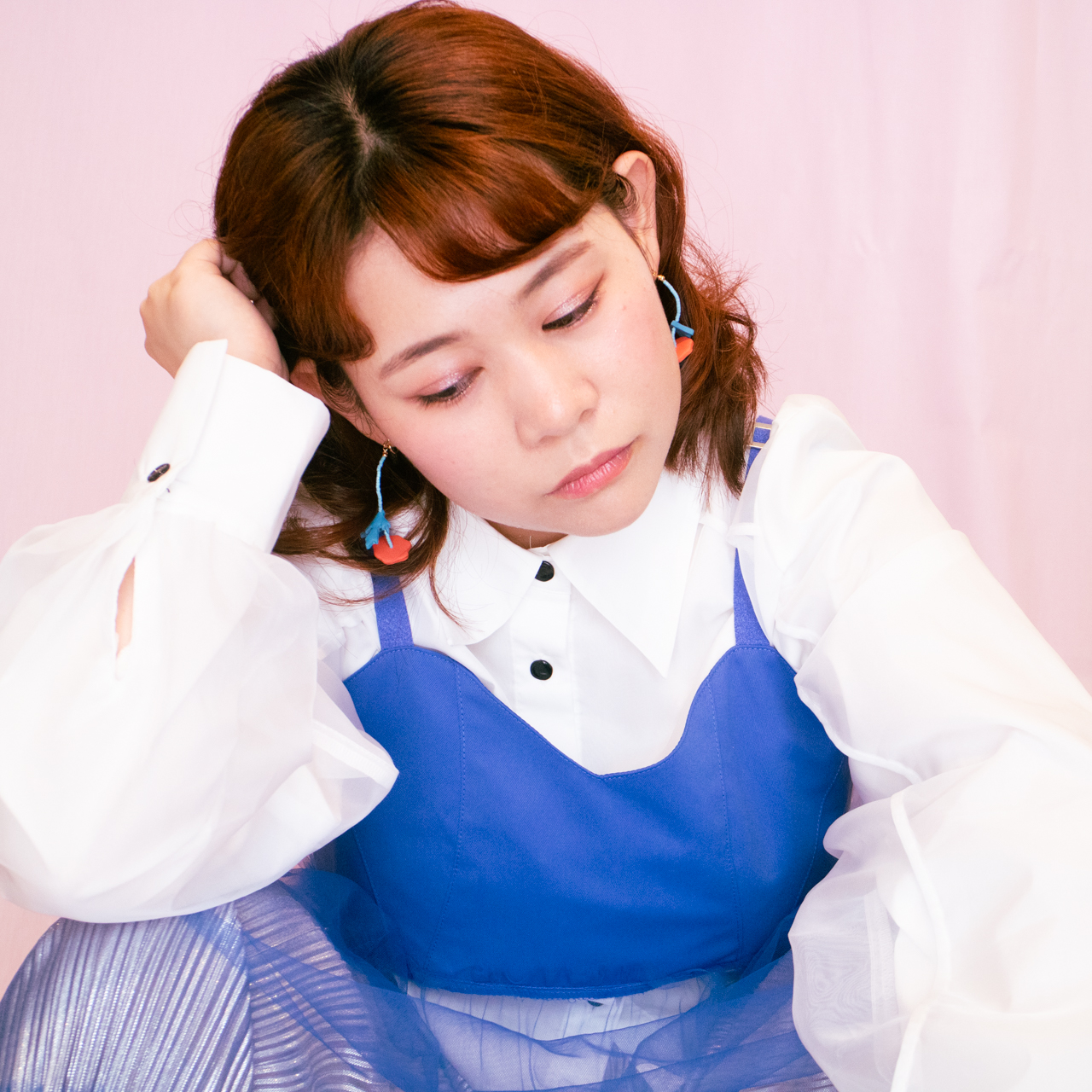 花を髪飾りに見立ててみたり、シロツメクサで花冠を作った頃をふわっと思い出すような、童心にかえることのできる大人のためのアクセサリーを目指しました。botanicではHi, thereの新しい試みとして、ワイヤーやビーズといった異素材を従来のクレイと組み合わせてみました。これまで9ピンやマルカンといった既製品を使用していた部分をワイヤーやビーズに変更したことで、より自由で遊び心たっぷりな作品に仕上がりました。